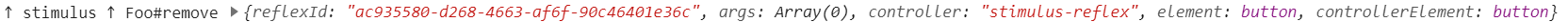 What's really interesting about this is that you'll notice we don't have to add the foo Stimulus controller to the button element in order to be able to call Foo Reflexes. We are not doing it magically in the background, either; there doesn't need to be a foo StimulusReflex Controller on the element in order for a declared Reflex to call FooReflex#remove on the server.